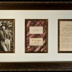 Original signature in blue ballpoint pen on onion skin book tissue overlay, framed with early image of Auden, along with a typescript of his popular poem Funeral Blues. Included is...